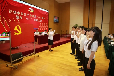 大會在雄壯的國歌聲中拉開序幕,參會人員著裝整齊,佩戴黨員徽章,莊嚴肅立。在公司黨委副書記、總經理田偉同志的帶領下,預備黨員高舉右手,緊握拳頭,莊嚴宣誓,立下自己對黨忠誠的誓言,表達了為黨的事業奮斗終身的決心和愿望。