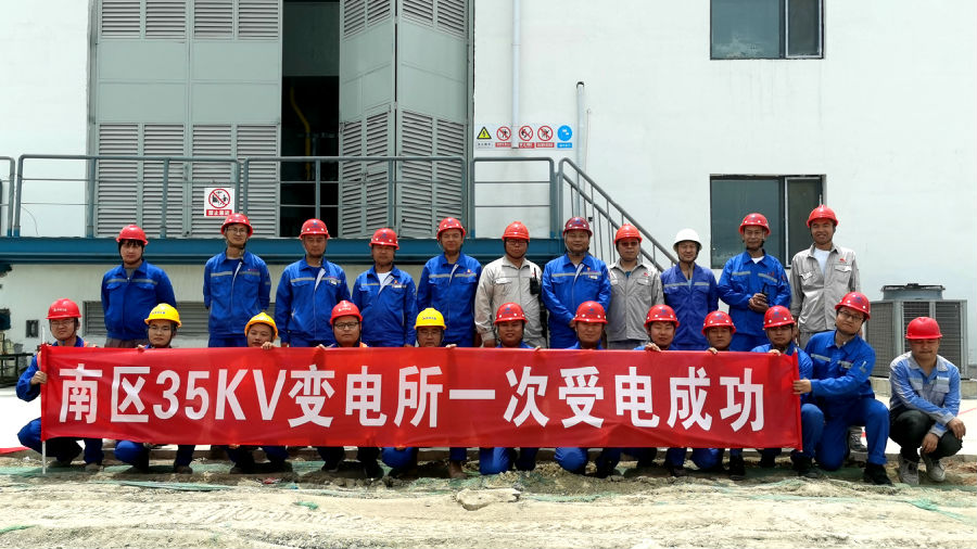 南區(qū)35kV變電所內(nèi)設(shè)35kV和10kV配電裝置、2臺(tái)31500kVA 35/10kV主變、6臺(tái)2500kVA干式變壓器和低壓配電柜,為南區(qū)所有裝置、輔助設(shè)施及公用工程單元用電設(shè)備供電,其兩回路電源分別來自110kV正泰甲醇變電站及110kV正泰臨白變電站,通過35kV電纜接至變電所內(nèi)35kV開關(guān)柜。建設(shè)期間,項(xiàng)目組精細(xì)化管理,有效控制設(shè)備訂貨、巡檢催交、設(shè)備安裝及調(diào)試等環(huán)節(jié),為本次一次受電成功打下堅(jiān)實(shí)的基礎(chǔ)。