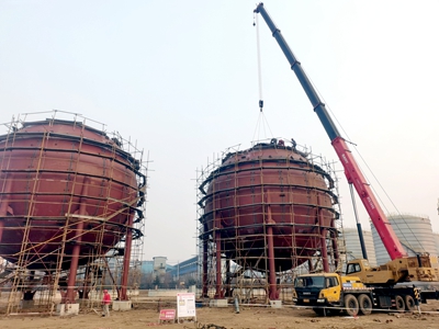節前大干|山東德普20萬噸/年碳酸酯項目球罐提前封頂