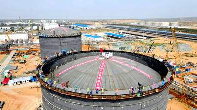 7月14日,由北京石油化工工程有限公司EPC總承包的延長石油靖邊天然氣儲氣調(diào)峰及配套LNG項目兩臺5萬立方米大型液化天然氣儲罐穹頂氣頂升作業(yè)圓滿完成,標(biāo)志著外罐主體結(jié)構(gòu)建設(shè)完畢,全面轉(zhuǎn)入內(nèi)罐安裝階段,為項目后續(xù)建成中交奠定了堅實(shí)基礎(chǔ)。