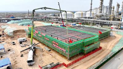 國慶節(jié)期間,由北京石油化工工程有限公司EPC總承包的陜西延長石油榆林凱越煤化有限責任公司50萬噸/年甲醇制乙醇項目,乙醇裝置變電所和機柜室主體結構順利封頂,提前15天完成節(jié)點目標。項目組員工用不懈奮斗向新中國成立75周年獻禮。