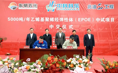 據悉,5 千噸/年乙烯基聚烯烴彈性體中試裝置,是由安徽中科科樂化工科技有限責任公司和北油工程聯合開發的EPOE 聚合工藝,項目依托東明中油燃料石化有限公司現有場地、原料及公用工程進行建設。該工藝技術由雙方聯合研發,具有完全自主知識產權。裝置達產后,將為下一步工業化應用提供技術開發和運行數據,提升區域內產業基礎的高級化、產業鏈條的現代化水平。