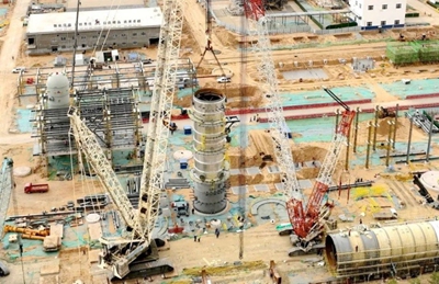 五一國際勞動節(jié)前夕,由北京石油化工工程有限公司EPC總承包的陜西延長石油榆林凱越煤化有限責任公司50萬噸/年甲醇制乙醇項目核心設備——預分離塔第三段順利完成吊裝,標志著該項目首臺分段式吊裝塔器成功封頂,為后續(xù)工程建設奠定了堅實基礎。