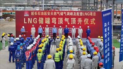 5月7日,由北京石油化工工程有限公司(簡稱“北油工程”)總承包的延長石油延安天然氣儲氣調峰及配套LNG項目取得重大進展——兩座5萬立方米液化天然氣(LNG)儲罐順利完成“雙罐同步穹頂氣頂升”關鍵工序。標志著項目主體結構建設全面完成,正式轉入內罐安裝階段,為項目后續投產運營奠定了堅實基礎。